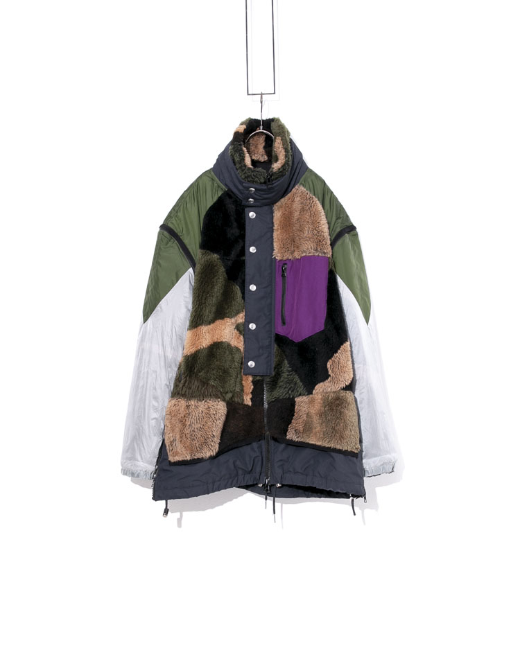 sacai×KAWS パッチワークフリースジャケット袖取り外し可能 ベスト 21-02559M